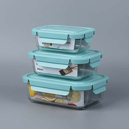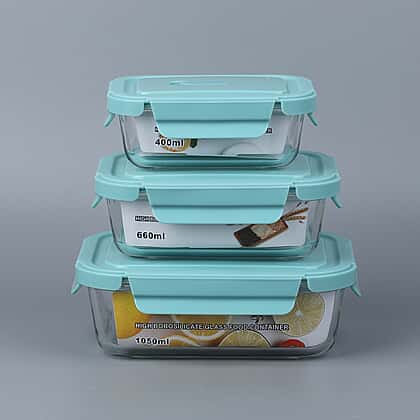 Set of 3 Glass Preservation Rectangle Shape Box - Green