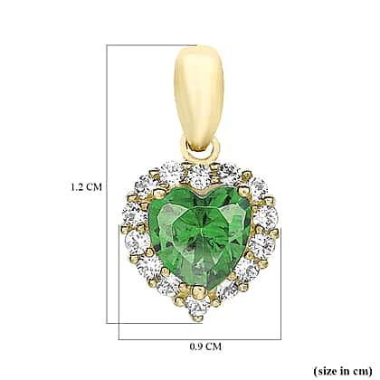 This naturally radiant pendant shines with a heart-shaped green cubic zirconia (7x7mm), beautifully faceted for maximum brilliance. A luminous halo of 14 round cubic zirconia enhances its striking centerpiece, creating a radiant effect. Set in durable prongs, it ensures both security and a refined sparkle. It is ideal for infusing rich emerald hues into your evening wardrobe.