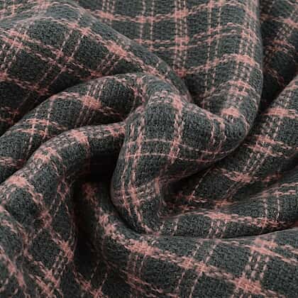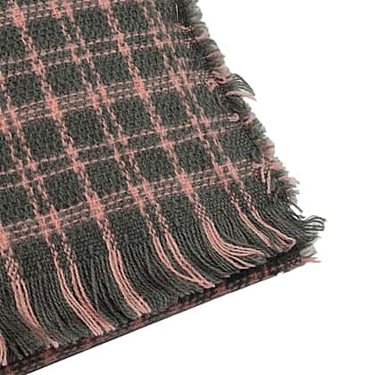 Small Checkered Pattern Tweed Blanket Scarf (Size 190x72 Cm) - Grey - Baby Pink
