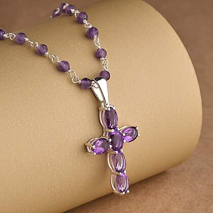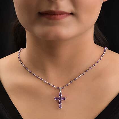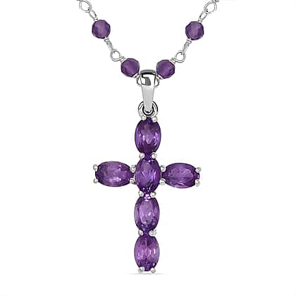 African Amethyst Cross Pendant Sterling Silver 14.07 ct 14.070 Ct.