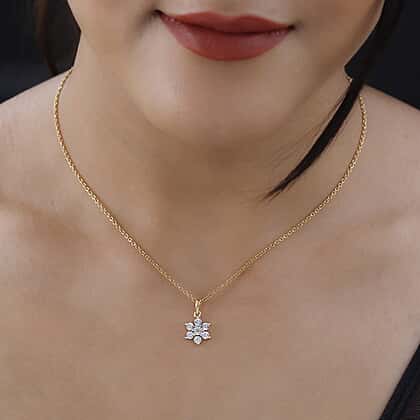 Natural Diamond Floral Pendant in 18K Vermeil Yellow Gold Plated Sterling Silver