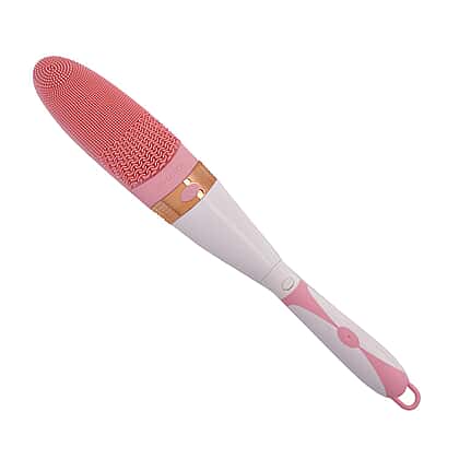 Electric Rotating Vibration Long Handle Silicone Bath Brush (Requires 2AA Batteries,Not Inc.) - Pink