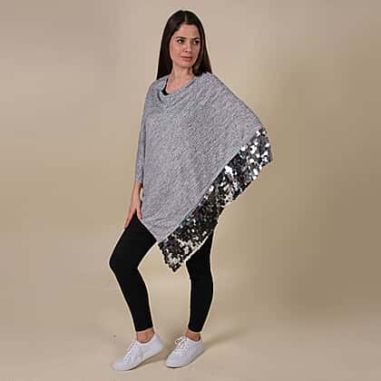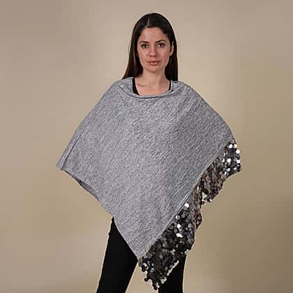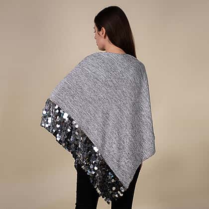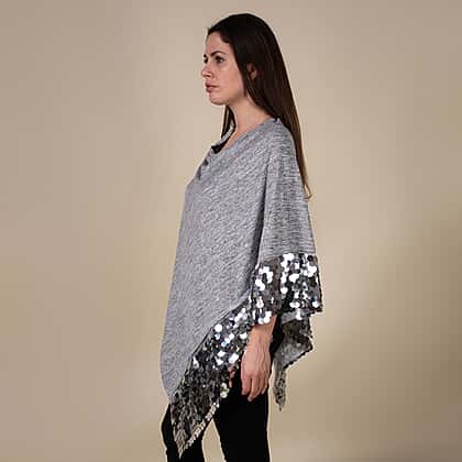 TAMSY Poncho with Sequin Border (Size 75 Cm) - Grey - White