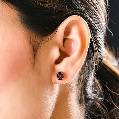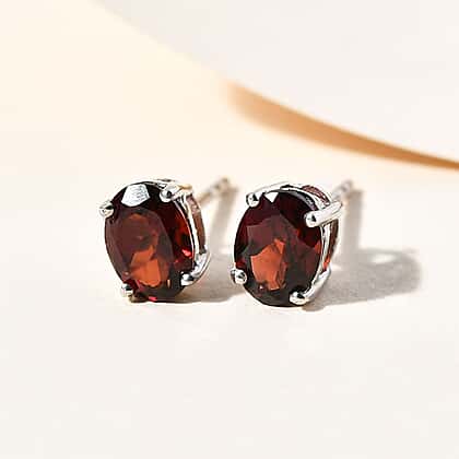 1.62 Ct. Red Garnet Earrings in Solitaire Platinum Plated Sterling Silver