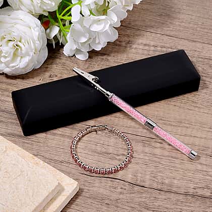2 Piece Set - Austrian Pink Crystal Bracelet (Size 7.5) & Bracelet Buddy 70.00 Ct.