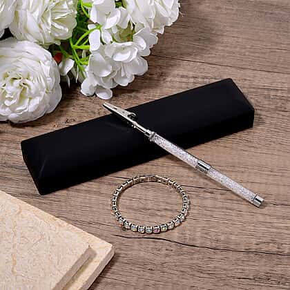 2 Piece Set - Simulated Mystic White Crystal Bracelet (Size 7.5) & Bracelet Buddy 70.00 Ct.
