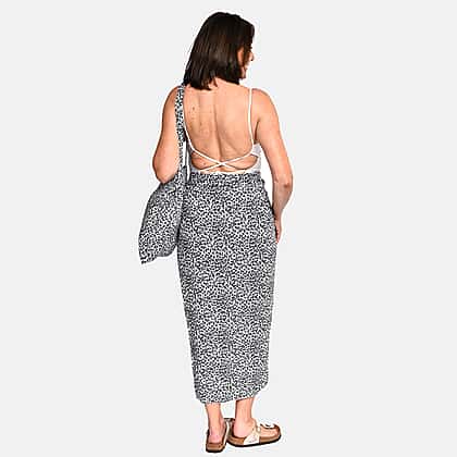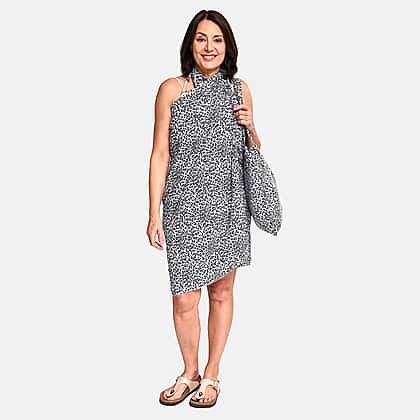Get this beautiful leopard pattern sarong by tamsy, a charming option for a sunny afternoon along the beach. It comes with a matching bag featuring leopard print. You can drape this sarong in a tie knot front design or style it as a dress. A perfect go-to silhouette whether you are walking to the pool or enjoying quality time with a friend at a beachside café.
