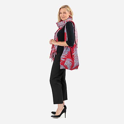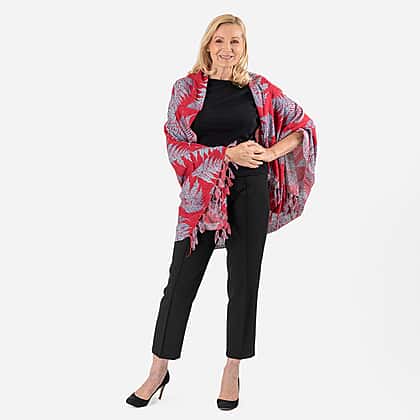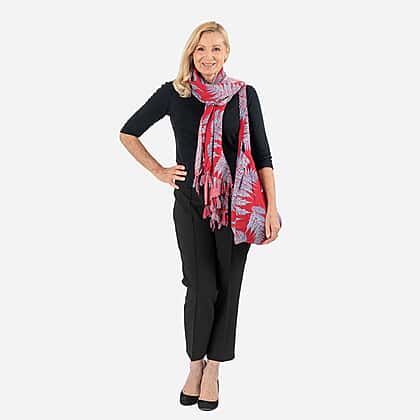 100% Viscose Leaf Pattern Sarong (Size 175x115 Cm) and Bag - Red