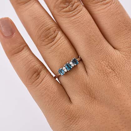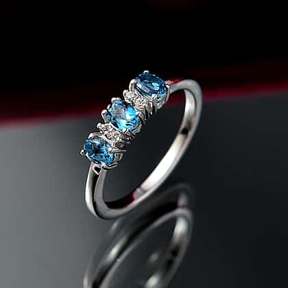 Capture timeless elegance with a modern twist by wearing this London blue topaz 3-stone ring on your finger. Three richly hued London blue topaz stones radiate a deep oceanic glow, known for their rarity, brilliance, and robust nature. Sparkling white zircons in between add a delicate shimmer, enhancing the ring’s sophisticated appeal. Crafted in hypoallergenic, platinum overlay sterling silver, it’s tarnish-resistant and gentle on sensitive skin. The 3-stone design symbolises the past, present, and future, making it a meaningful choice for gifting or personal keepsake. A piece that’s as enduring as it is beautiful, designed for everyday elegance and treasured moments.