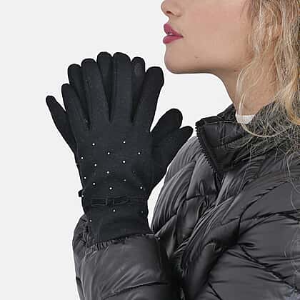 5-Finger Touch Screen Gloves with Brick & Arctic Velvet Lining - Black