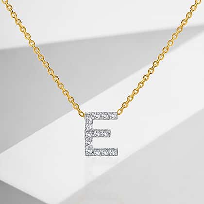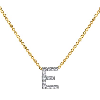 9K Yellow and White Gold With VS SI Diamond Mini Initial 'E' Necklace 17 Inch