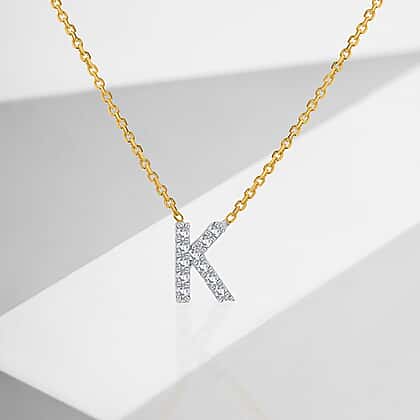 9K Yellow and White Gold With VS SI Diamond Mini Initial 'K' Necklace 17 Inch