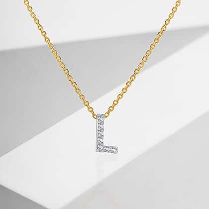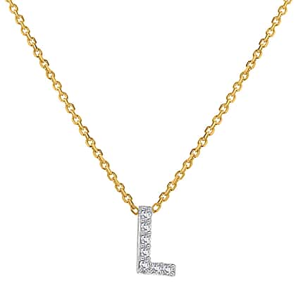 9K Yellow and White Gold With VS SI Diamond Mini Initial 'L' Necklace 17 Inch