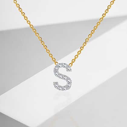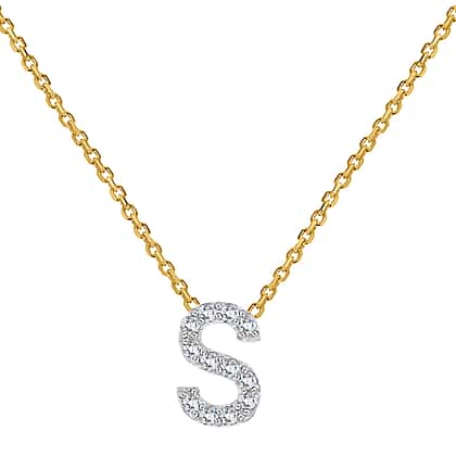 9K Yellow and White Gold With VS SI Diamond Mini Initial 'S' Necklace 17 Inch