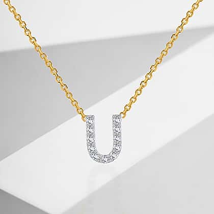 9K Yellow and White Gold With VS SI Diamond Mini Initial 'U' Necklace 17 Inch