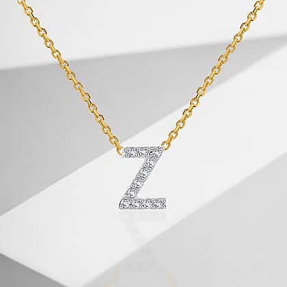 9K Yellow and White Gold With VS SI Diamond Mini Initial 'Z' Necklace 17 Inch