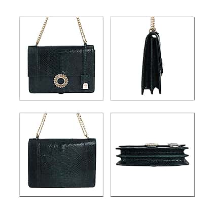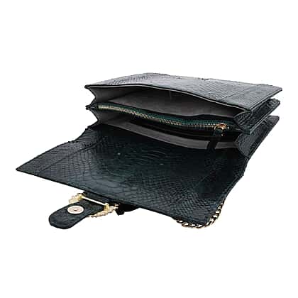 LA MAREY 100% Genuine Python Leather Crossbody Bag with Adjustable Shoulder Chain Strap - Dark Green