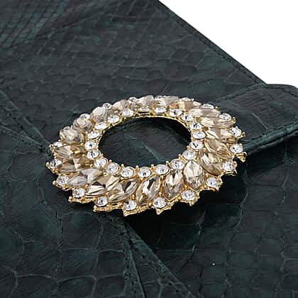 La Marey Structured 100% Genuine Python Leather Crossbody Bag - Dark Green