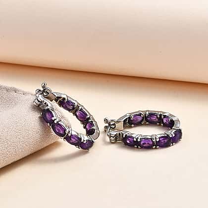 African Amethyst Inside-Out Hoop Earrings in Stainless Steel 6.23 Ct.
