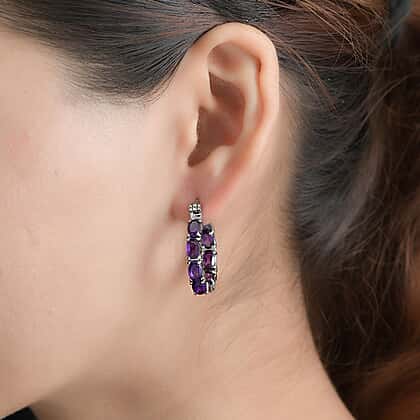 Amethyst Hoop Earrings with Clasp 6.23 Ct.
