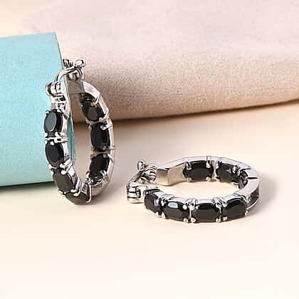 Boi Ploi Black Spinel Hoop Earrings with Clasp 8.95 Ct