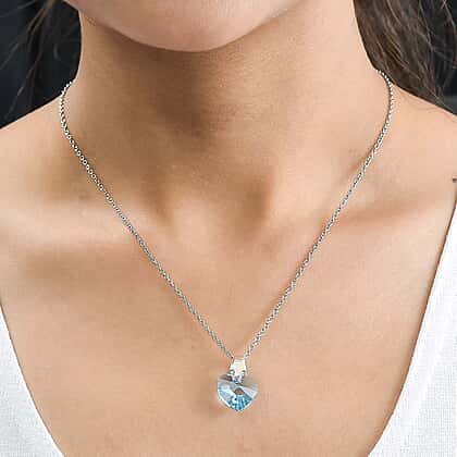 Aquamarine Finest Crystal Pendant with Chain (Size 20) in Platinum Overlay Sterling Silver 6.890 Ct.