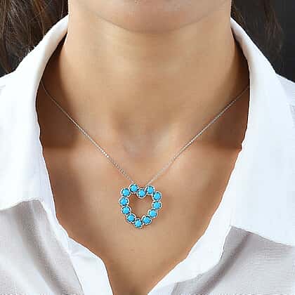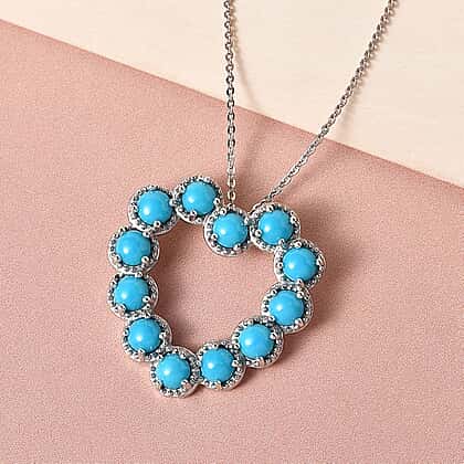 Arizona Sleeping Beauty Turquoise Heart Pendant with Chain (Size 20) in Platinum Overlay Sterling Silver 3.48 Ct, Silver Wt 6.36 GM