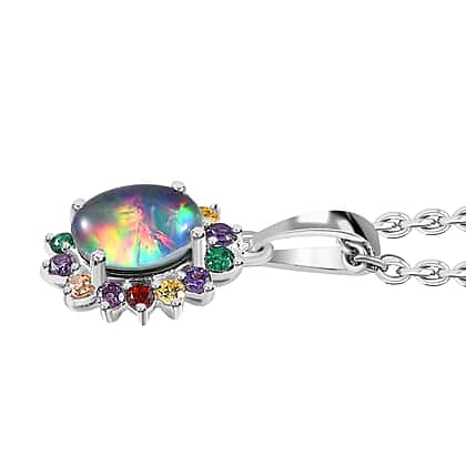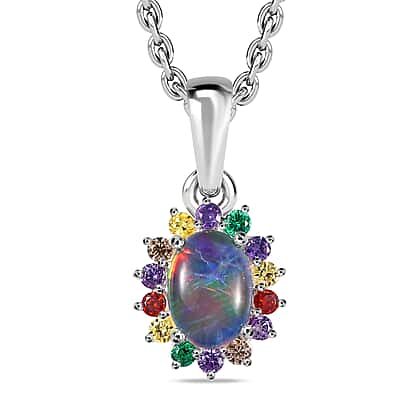 Boulder Opal and Simulated Rainbow Sapphire Sterling Silver Pendant with Chain (Size 20)
