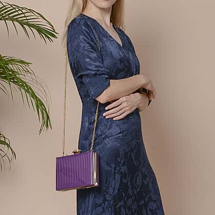 BOUTIQUE COLLECTION Purple Colour Stripe Pattern Shoulder Bag with Chain Strap and Crystal Studded Top Knob