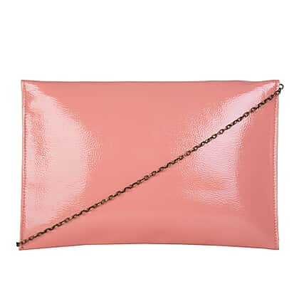 Isabella's pink envelop clutch bag is a huge clutch bag that can hold numerous items for your night out. This clutch bag comes with an extra metal chain so that it may be worn over the shoulder. The bag features one zip pocket and one main section. This clutch bag has a flap closure. The hardware colour is dubbed 'antique brush,' and it has a muddy appearance similar to polished gold.