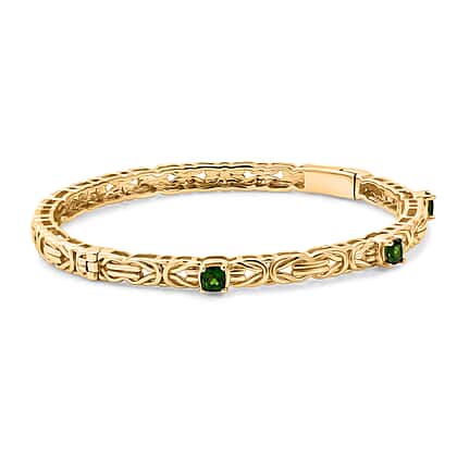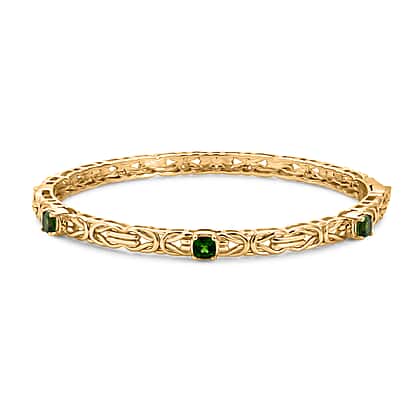 Byzantine Bangle Natural Chrome Diopside (Size-7.5) in Yellow Gold Tone
