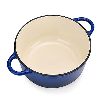 Bring timeless elegance and everyday functionality to your kitchen with this dark blue 4L cast iron pot and lid set. Designed for home cooks who love rich flavours and robust cookware, its heavy iron construction retains and evenly distributes heat. The glossy deep blue finish adds a sleek, premium look to any stovetop. With a snug lid to seal in moisture and nutrients, this pot is perfect for stews, casseroles, and slow-cooked favourites. Its sturdy 4.6kg weight ensures reliable, long-lasting performance, and the 24x32x10.7cm dimensions offer ample capacity for generous family portions or batch cooking with ease.