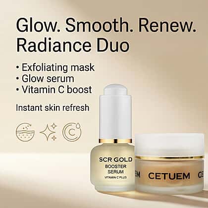Cetuem Radiance Duo - Exfoliating Mask 50ml and SCR Gold Booster Serum With Vitamin C Plus 15ml