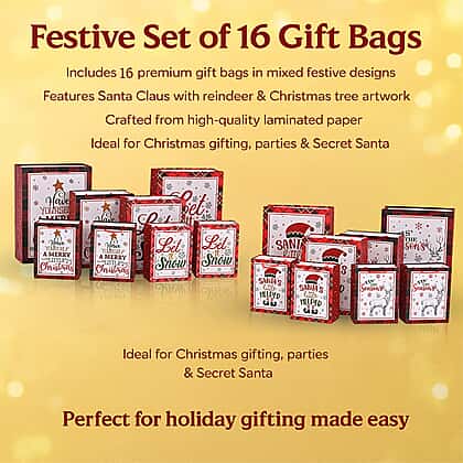 Christmas Gift Bags - Set of 16 with Classic Christmas Patterns