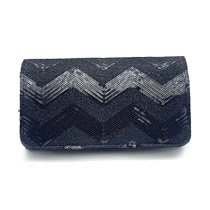 Sophistication meets practicality with the Zelina Emma diagonal lines patch evening clutch bag, designed to bring understated glamour to your wardrobe. Crafted in sleek black with shimmering sequined diagonal patches, it adds depth, texture, and sparkle that catches the light beautifully. The compact silhouette opens to reveal a neatly lined interior with an inside slip pocket for essentials like cards, keys, or lipstick. Finished with a secure magnetic closure, it ensures style and function go hand in hand. Perfect for dinners, weddings, or evening parties, this versatile clutch elevates every outfit with timeless charm and modern elegance.