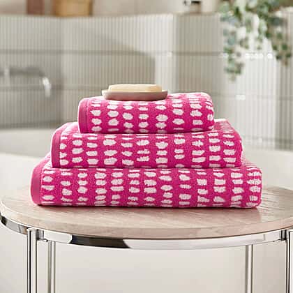 Copenhagen Home 100% Cotton Woven Abstract Dot Pattern Jacquard Hand Towel (90x50CM) - Pink