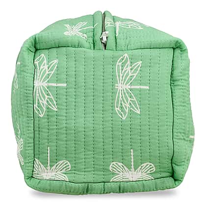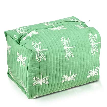 Fresh and functional, this Set of 4 dragonfly print quilted fabric cosmetic pouches in green combines practicality with botanical charm. Each pouch displays a delicate dragonfly design on soft green quilted fabric, offering a natural, soothing look. With secure zippers and four convenient sizes (25.5cm x 15.5cm, 23cm x 13cm, 18cm x 10.25cm, and 12cm x 8cm), there’s space for everything—from makeup brushes to travel minis. The lightweight, washable material makes them easy to care for, while the quilted texture adds both structure and comfort.