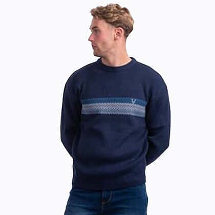 JJ Willis Acrylic Crew Neck Stripe Jumper (Size XXL) - Navy