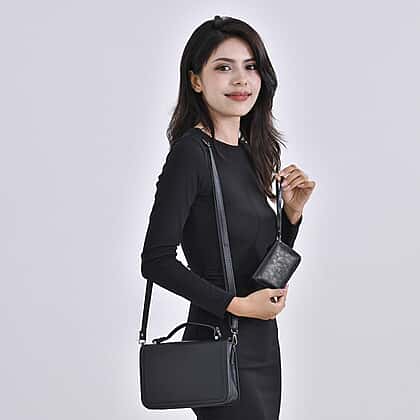Set of 2- Sling Crossbody Bag with Card Holder - Black