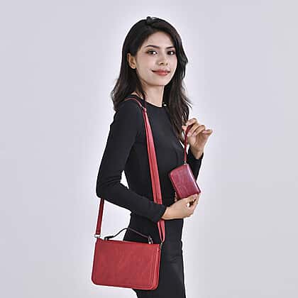 Set of 2- Sling Crossbody Bag with Card Holder - Red