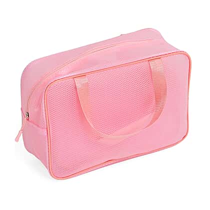 This set of three cosmetic storage bags is designed to organise essentials with clarity and ease, featuring a coordinated pink tone that maintains a clean and uniform look. Each bag varies in size, allowing separation of items based on use, from daily essentials to travel requirements. The structured form helps retain shape while offering sufficient space for storage. Crafted with a lightweight material, the bags remain easy to carry and handle. Zip closures provide secure access, while the handles enhance convenience during use or travel. A practical set suited for everyday organisation, travel, and personal care storage.