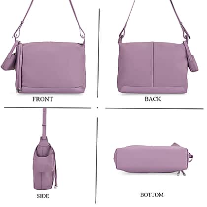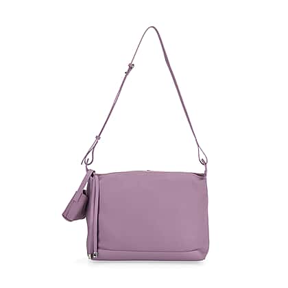 Genuine Leather Shoulder Bag with Detachable Mini Pouch - Lavender