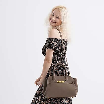 Beautifully crafted in rich grey, this genuine leather structured handbag is the perfect mix of sophistication and practicality. Designed with a sleek silhouette, it features a smooth gold clasp on the front and sturdy top handles for easy carrying. The detachable shoulder strap adds hands-free convenience, while the spacious interior with zip and slide pockets keeps your essentials neatly organised. Finished with a soft polyester lining and a secure top zip, this handbag transitions effortlessly from work to weekends.