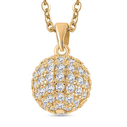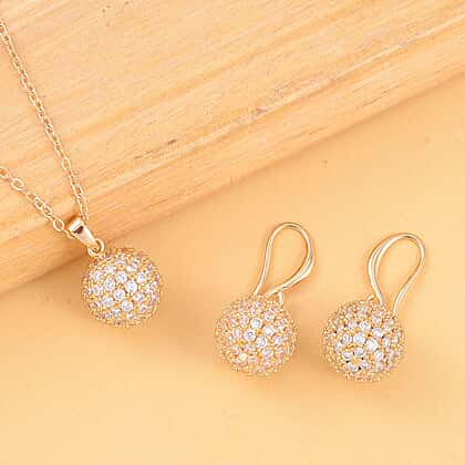 2 Piece Set - Simulated Diamond Cluster Pendant with Chain (Size 20 - 2) and Drop Earrings in Yellow Gold Tone