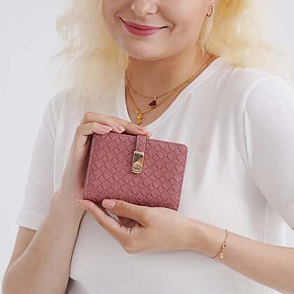 Designer Inspired - Woven Wallets with RFID Protection - Black - Dark Pink