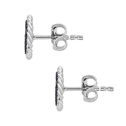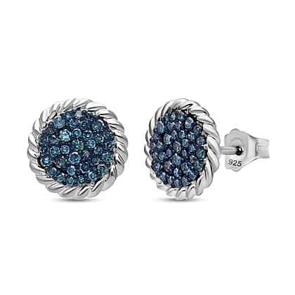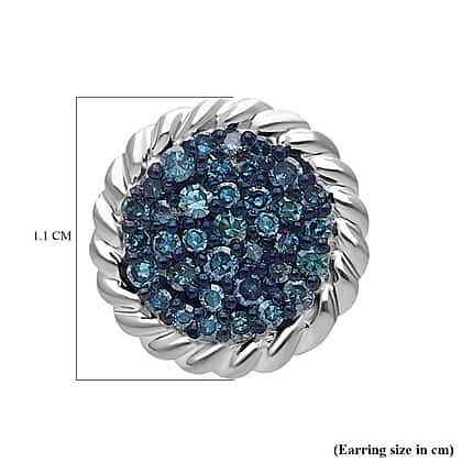 Blue Diamond Earring with Push Back in Rhodium Overlay Sterling Silver 0.52 Ct.
