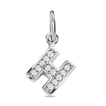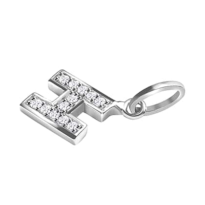 Diamond Initial H Pendant in Rhodium Overlay Sterling Silver 0.17 Ct