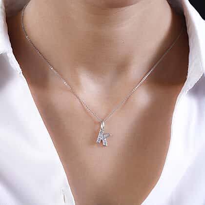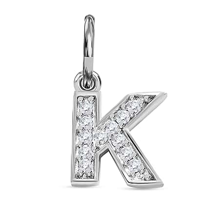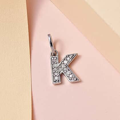 Diamond Initial K Pendant in Rhodium Overlay Sterling Silver 0.17 Ct