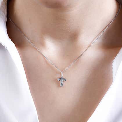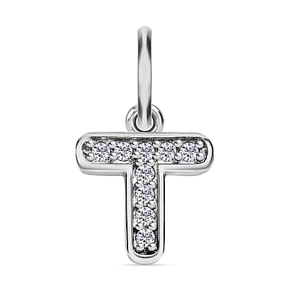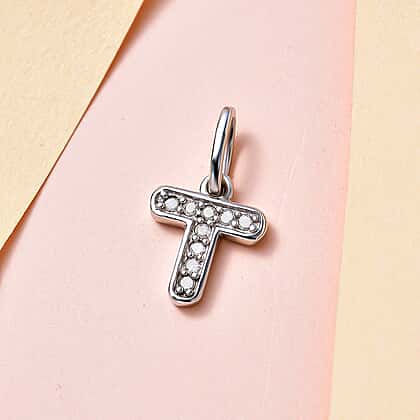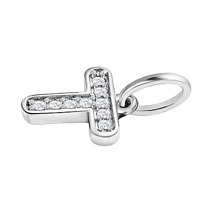 Diamond Initial T Pendant in Rhodium Overlay Sterling Silver 0.17 Ct