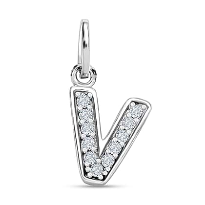 Diamond Initial V Pendant in Rhodium Overlay Sterling Silver 0.17 Ct
